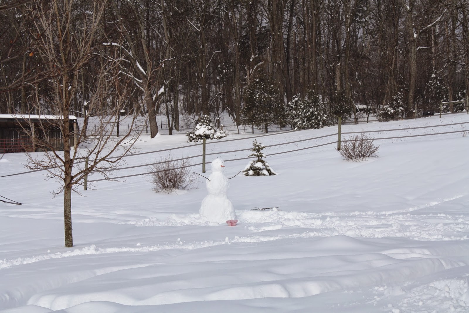My last thoughts as I crossed the horse field and entered the basement stairwell was how ever was I going to get out of the wet jeans that were plastered to my legs. It was not going to be easy. Later, dressed in dry clothing and sitting in a comfortable chair, I felt thankful to be able to enjoy winter as I did today. I had a chance to relive childhood sledding, feel snowflakes on my eyelashes, and witness the serenity of a deep, falling snow. Winters like this only happen every few years in our Virginia experience. We need to seize the opportunity to enjoy them while we can. Claire made a comment